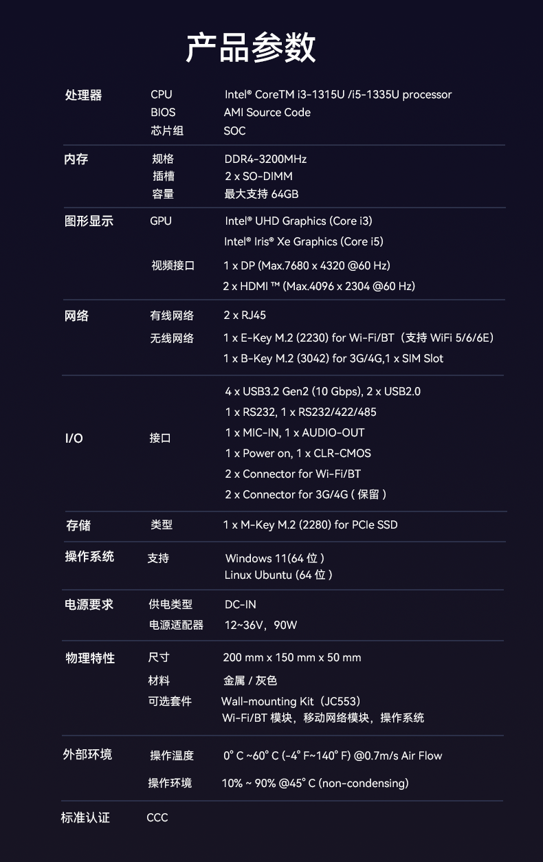 1、米兰milanAE613采用密封紧凑设计,紧凑设计可以使设备更易于安装在交通场景中的有限空间内,适用于车载、道路监控、交通信号控制等应用场景,该设计有利于导热更有利于散热,并且机器功耗只有15w,能够降低对电力资源的需求,有利于节能减排,符合绿色环保的发展理念,并且较低的功耗意味着可以延长电池的使用时间,提高设备的续航能力;