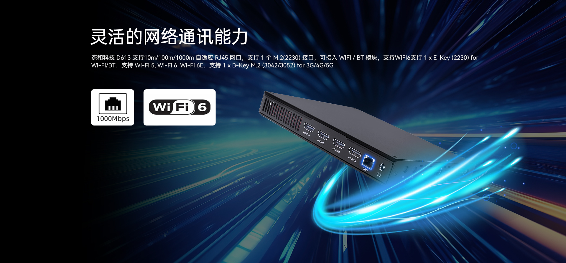1 x E-Key M.2 (2230) for WiFi/BT),支持Wifi5/6/6E(CNVI)